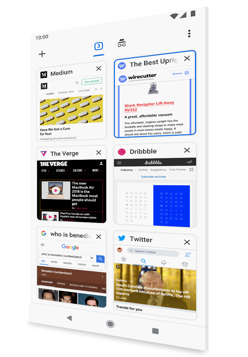 Google Chrome for mobile lets users browse fast while saving up to 50% of data usage while browsing.1